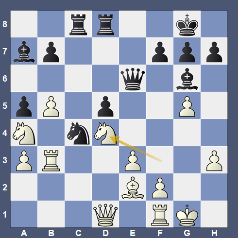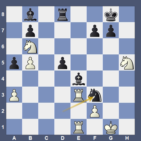 Krzysztofs Gegner hatte es versäumt, im richtigen Moment die Damen zu tauschen, was ihm trotz der weißen Qualität mehr ausreichend Spiel gegeben hätte. Damit geriet der Schwarzspieler in diesen heftigen Königsangriff. Hier gewinnen zugegebenermaßen auch einfache Züge wie Dxh6, aber Krzysztof findet ein stilvolles Ende:
