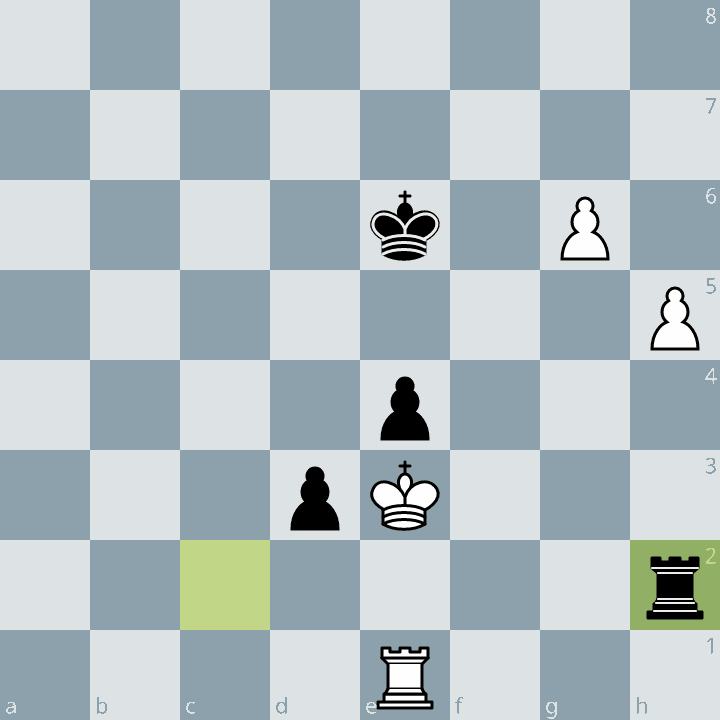 Nachdem sich die schwarzen Bauern gefühlt 2 Ewigkeiten lang nicht mehr bewegt hatten, sind die weißen Bauern mittlerweile selbst sehr weit vorgerückt. Hier hätte 56. ... Tg1!! sogar noch gewonnen, weil der g-Bauer noch f7 deckt und der schwarze König nicht zur Hilfe eilen kann. Stephan nahm hier allerdings mit dem Vorstoß des g-Bauern einfach das Remis mit.
