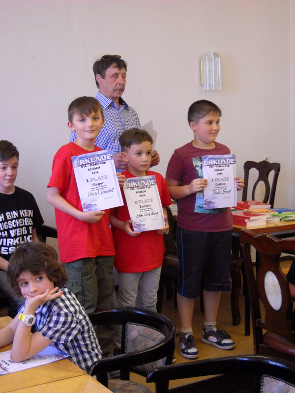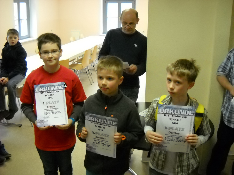 Am heutigen Sonntag fand in Glauchau das dritte und letzte Turnier des u14-Cup's 2016 statt. Mit insgesamt 33 Schacheleven aus sieben Vereinen in den drei Turnieren konnten wir einen neuen Teilnahmerekord erreichen. Am heutigen Spieltag holten sich nach harten Kämpfen die Urkunden: