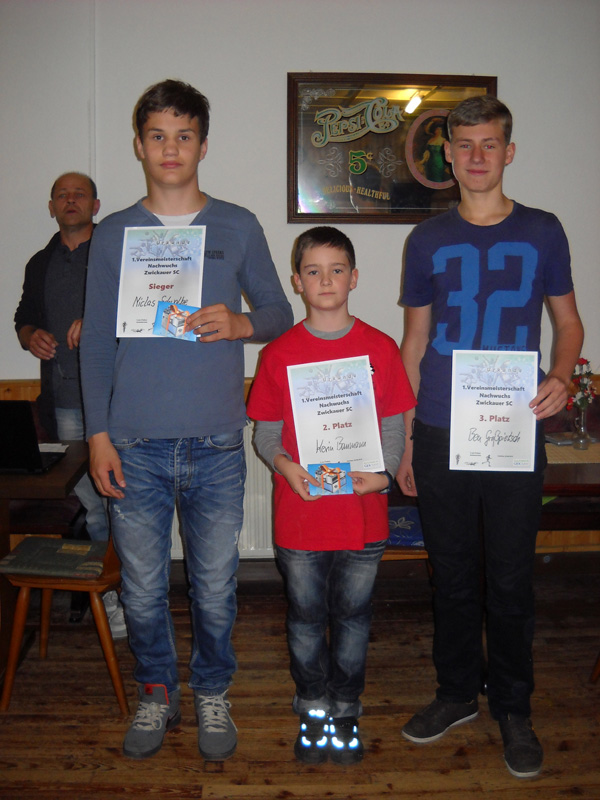 Mit immerhin 20 Nachwuchsakteuren im Verein veranstalteten wir in diesem Jahr erstmals eine Nachwuchsvereinsmeisterschaft. Am heutigen Samstag nutzten 12 Schacheleven die Gelegenheit mit ihren Vereinskameraden zu wetteifern. Nach sieben spannenden Schnellschachrunden mit einigen Überraschungen setzte sich Niclas Schwalbe vor Kevin Baumann und Ben Großpietsch durch. Doch gewonnen haben alle an Erfahrungen und Zusammenhalt innerhalb der Truppe.